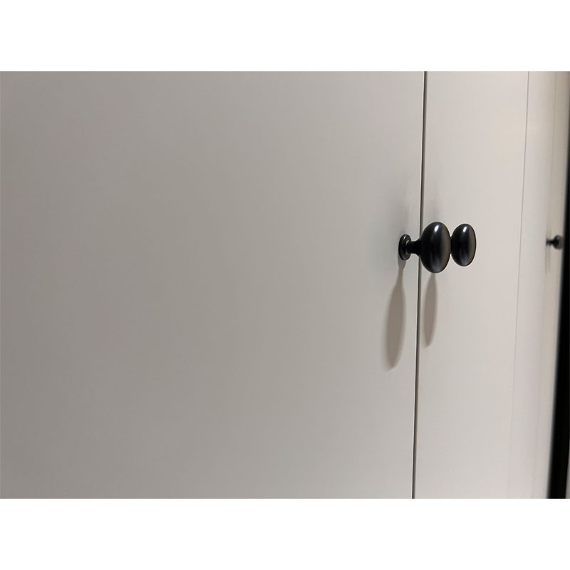 Τα ρούχα, τα παλτό και τα κλινοσκεπάσματα εκτός εποχής μπορούν να φυλάσσονται στις κλειστές ντουλάπες. Οι μικροσκοπικές μαύρες κυκλικές λαβές είναι αξιολάτρευτες και δίνουν χρώμα στο βεστιάριο.