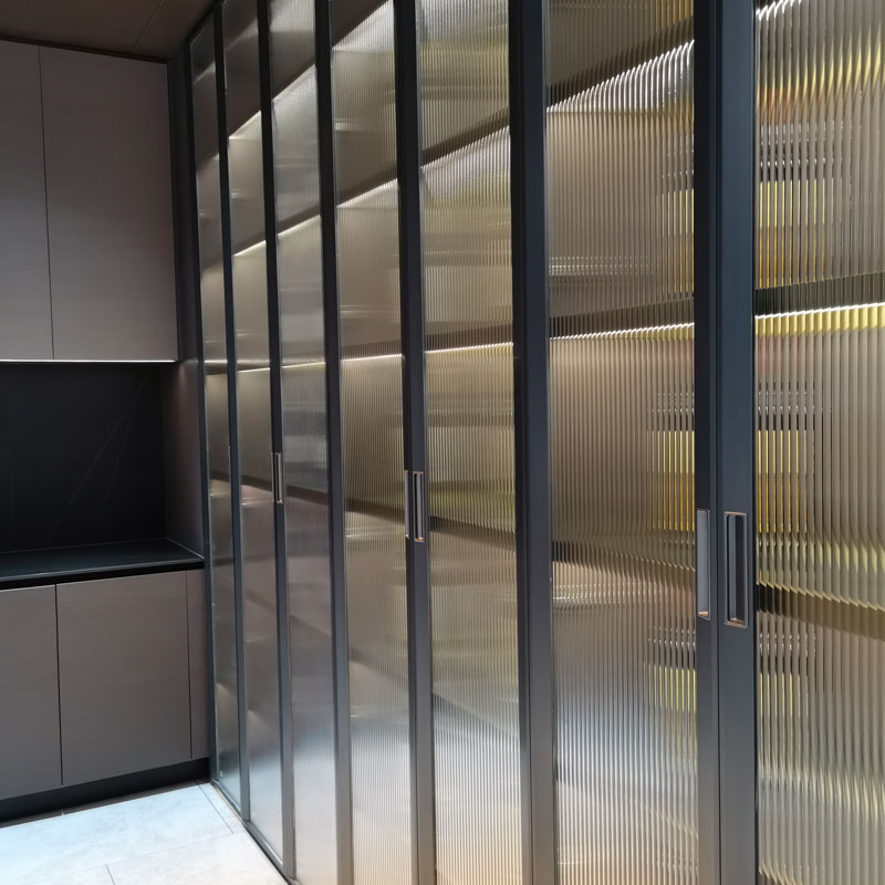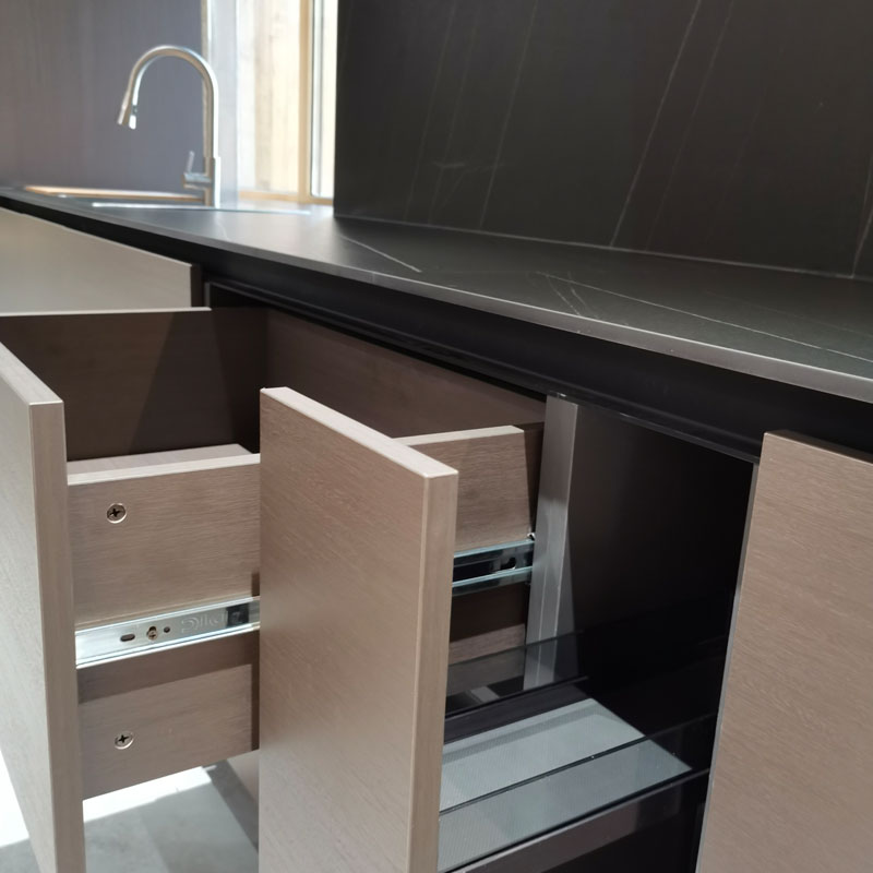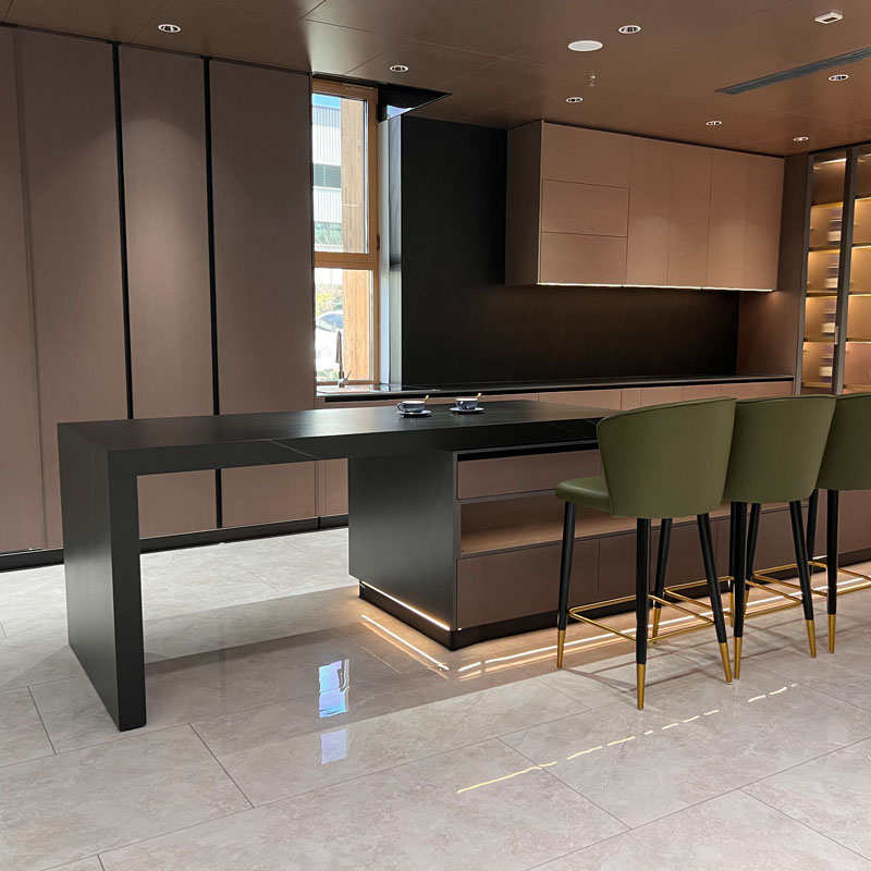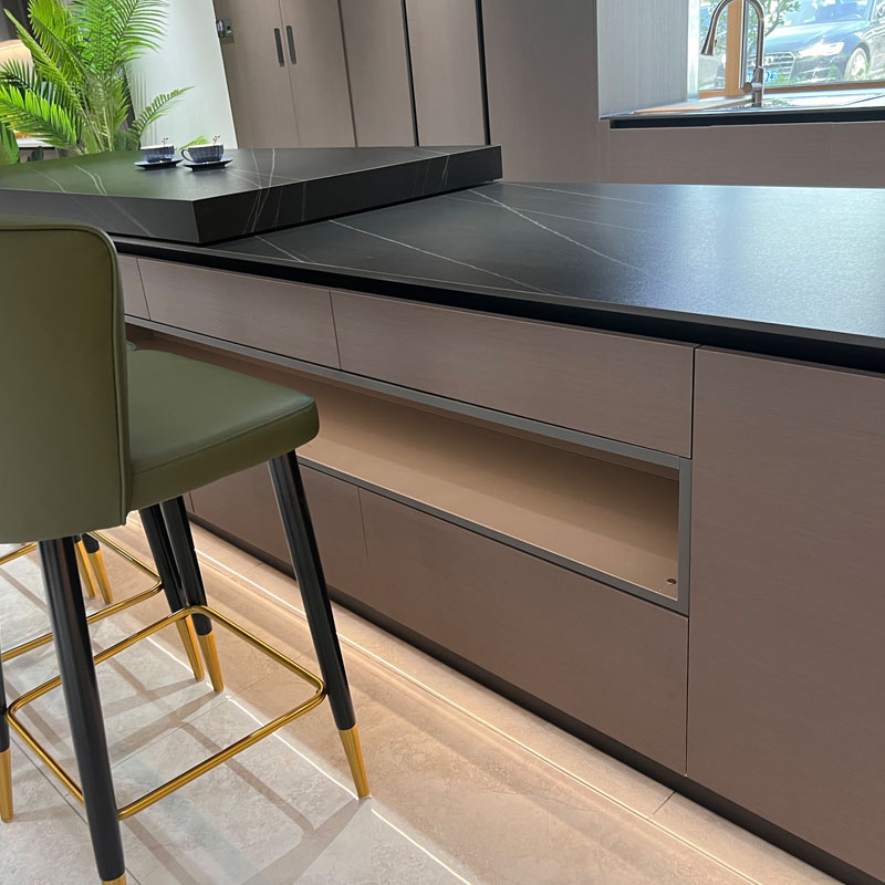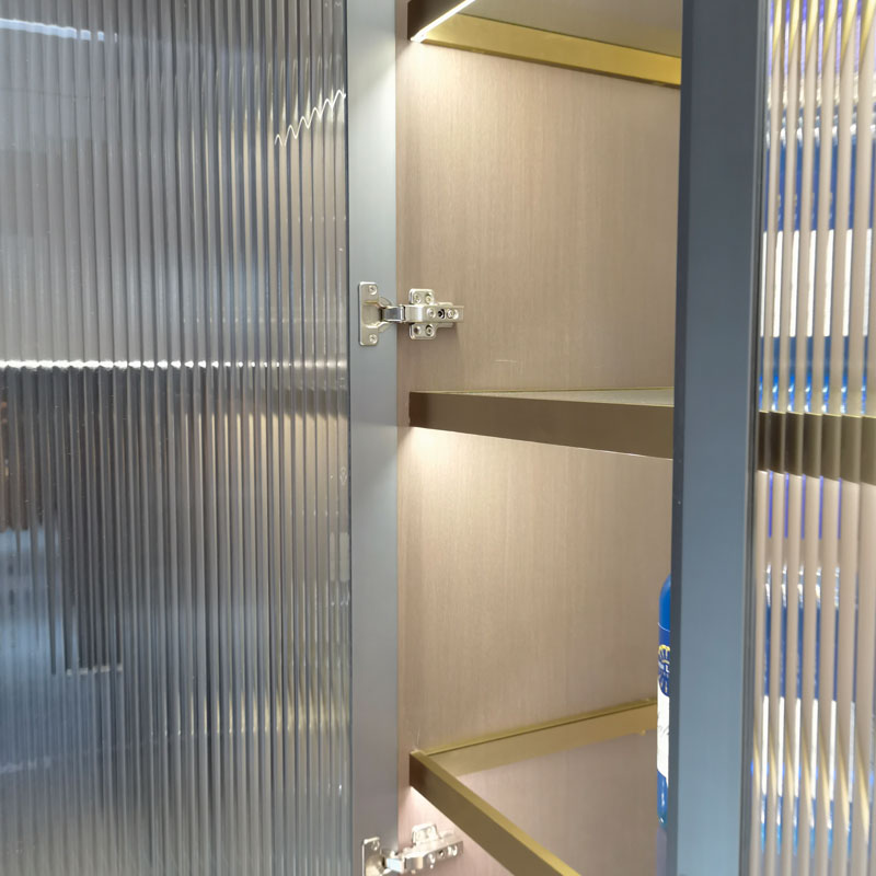 | Περιγραφή | Ντουλάπια κουζίνας πολυτελείας σχήματος L με γυάλινα ντουλάπια κουζίνας |