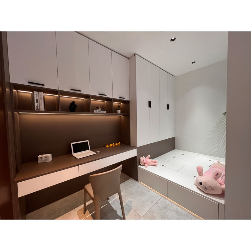 Η SINOAH δεσμεύεται να παρέχει λύσεις κρεβατοκάμαρας μελέτης με πιο δημιουργικές ιδέες. Αυτό το σετ ντουλαπιών κρεβατοκάμαρας μελέτης επικεντρώνεται κυρίως στα άτομα που συχνά χρειάζονται να εργαστούν ή να σπουδάσουν στο σπίτι. Συνδυάζει ντουλάπες, ντουλάπια αποθήκευσης, βιτρίνες, ράφια, γραφεία και κρεβάτια χωρίς να χρειάζεται να τα ταιριάξετε μόνοι σας, διασφαλίζοντας τη συνέπεια του στυλ του δωματίου. Επίσης, ο σχεδιασμός πολλών ντουλαπιών παρέχει πολύ χώρο αποθήκευσης για να διατηρείτε όλα τα αντικείμενα σε τάξη και να διατηρεί το δωμάτιο τακτοποιημένο και όμορφο.