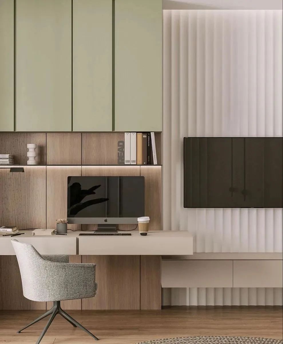 Η εργασία από το σπίτι δεν είναι πλέον ασυνήθιστη. Για τις οικογένειες που επιδιώκουν λύσεις ατομικότητας και εξοικονόμησης χώρου, τα γραφεία μπορούν να προσαρμοστούν ολοκληρωτικά με βιβλιοθήκες και ντουλάπια προβολής. Ο κομψός σχεδιασμός δεν καταλαμβάνει χώρο.