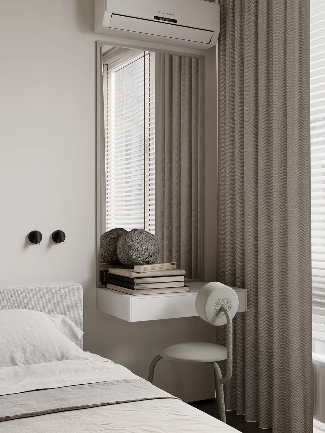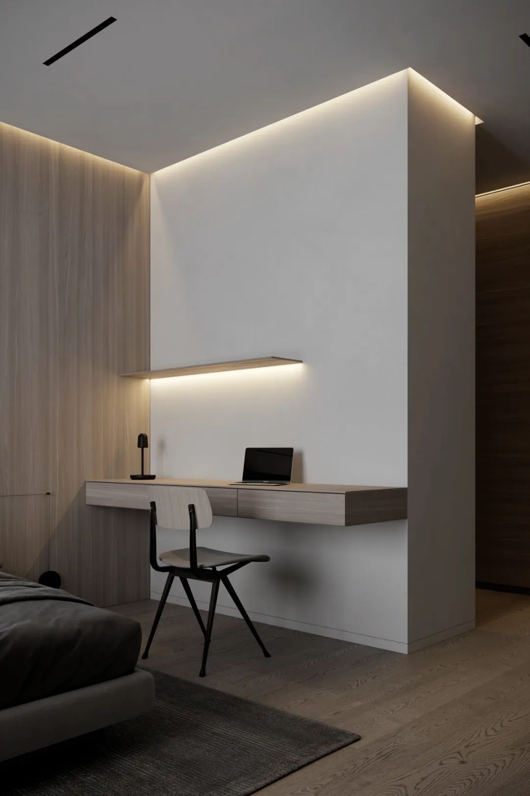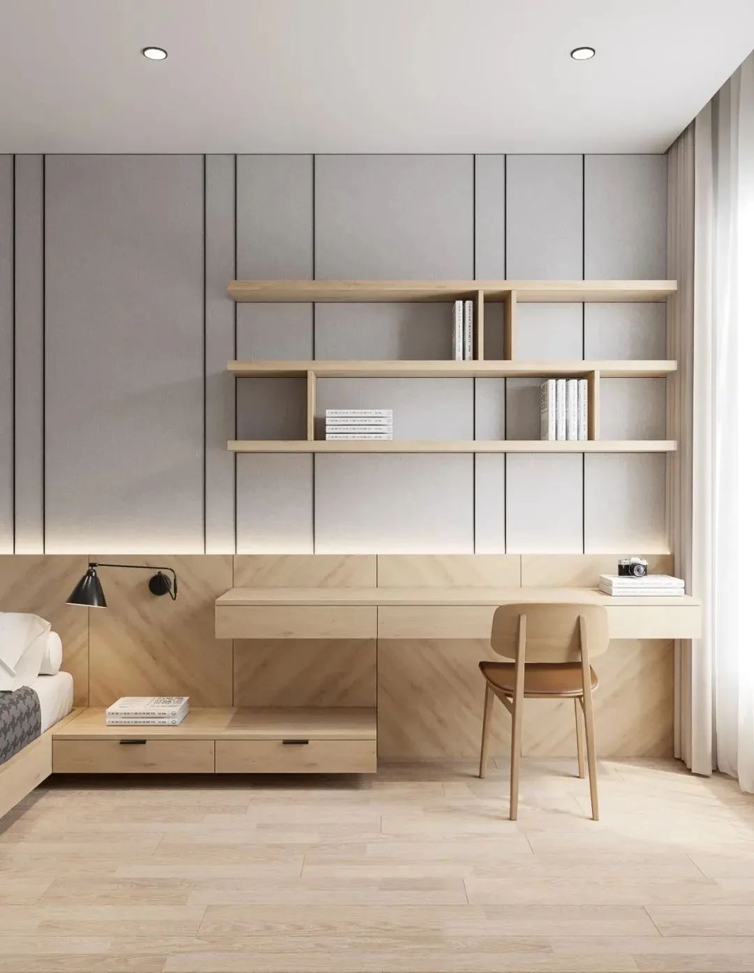 Τα παραδοσιακά τραπέζια του κρεβατιού καταλαμβάνουν ένα μεγάλο μέρος του χώρου και δεν έχουν εξατομίκευση και αίσθηση μόδας. Η αναστολή του κομοδίνο στον τοίχο και η προσαρμογή του ολοκληρωτικά με το τοίχωμα του φόντου δημιουργεί ένα 整齐划一 και εξελιγμένη εμφάνιση.