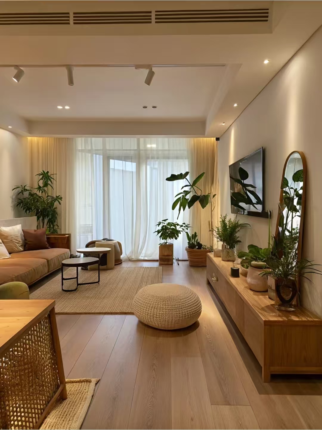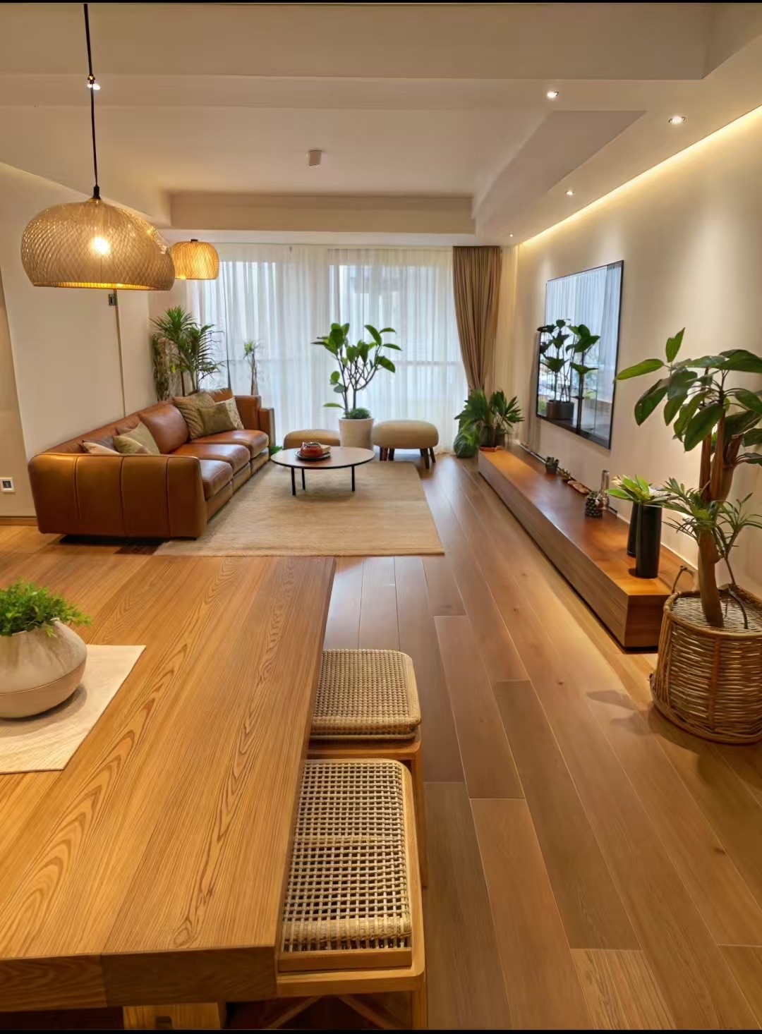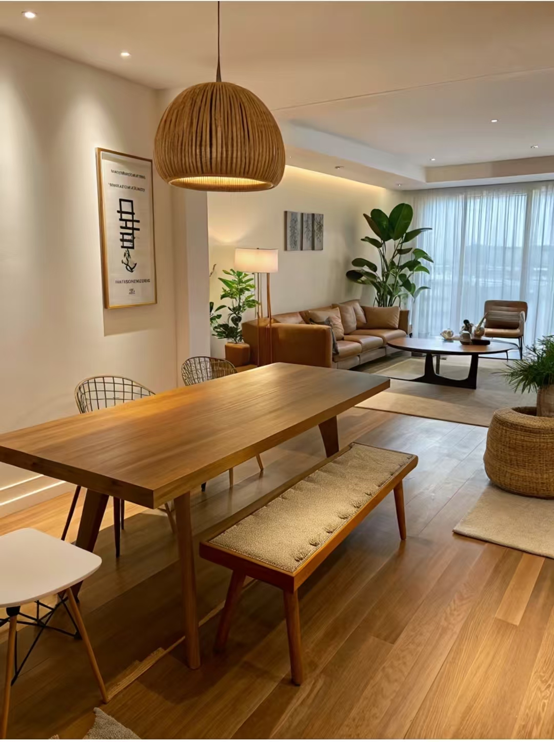 Ένα σπίτι σε φυσικό ξύλο στυλ είναι απλό αλλά εξελιγμένο, με κάθε λεπτομέρεια να ρέει με ζεστασιά και άνεση, προσφέροντάς σας ένα ήσυχο καταφύγιο στη μέση της πολυσύχναστης πόλης.
