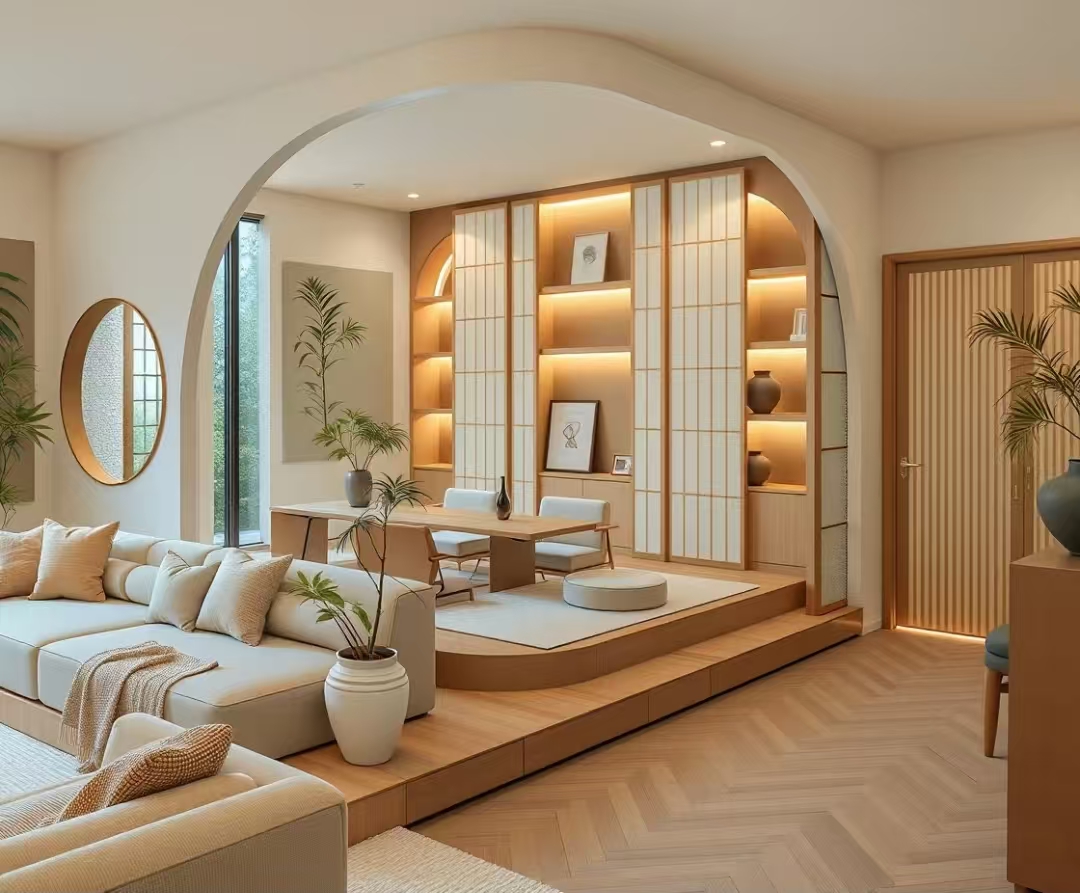 Σε συνδυασμό με μια τοξωτή πόρτα και μια πλατφόρμα, ενισχύοντας τον οπτικό χώρο και εμπλουτίζοντας τα στρώματα!