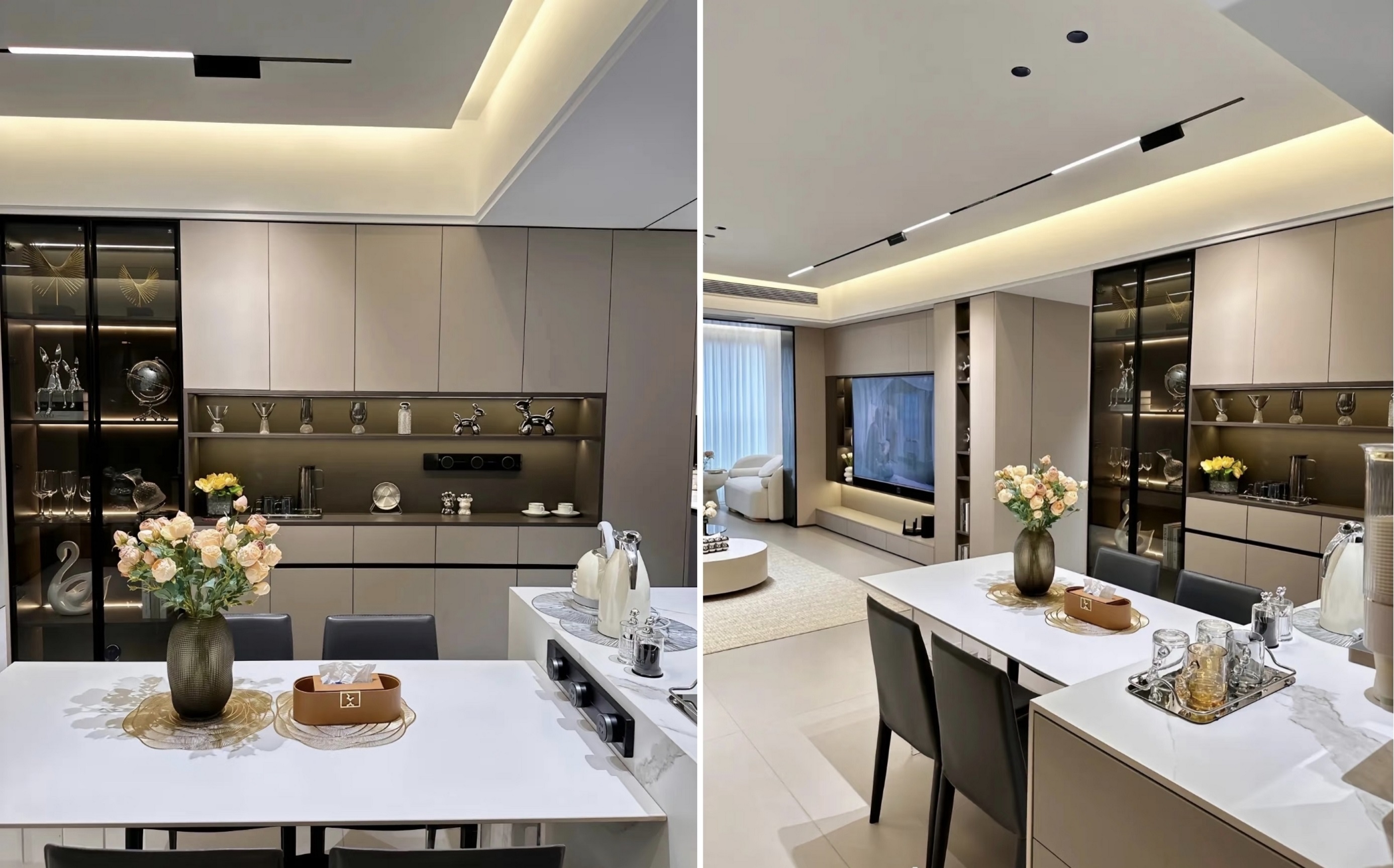 6. Ο φωτισμός είναι η ψυχή ενός σπιτιού. Το σαλόνι υιοθετεί ένα σχέδιο χωρίς κύριο φως, με θερμοκρασία χρώματος 3500k. Όλα τα φώτα είναι ενσωματωμένα στο ανώτατο όριο και πρέπει να προ-εκτοξεύονται κατά τη διάρκεια του σταδίου ξυλουργικής.