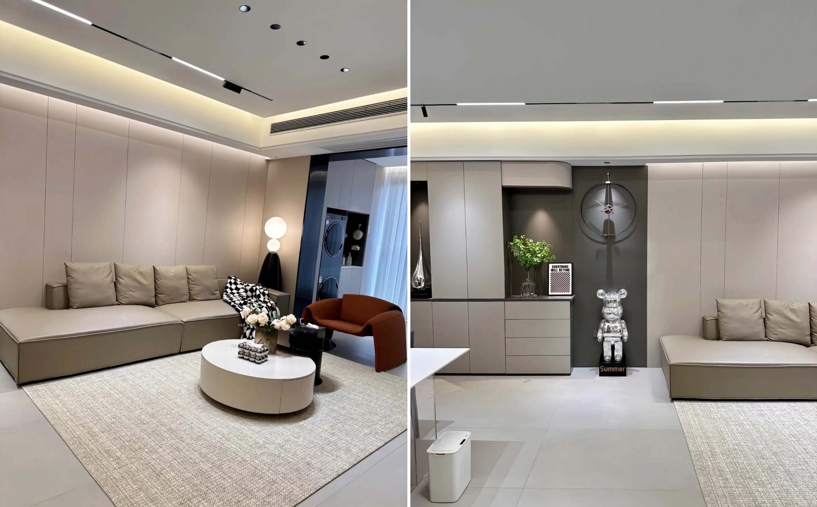 1. Ολόκληρο το σπίτι είναι στρωμένο με 1500*750 ζεστά γκρι πλακίδια ματ, χρησιμοποιώντας το ίδιο χρώμα εποξειδικής χρωματισμένης άμμου, χωρίς κατώτατες πέτρες, καθιστώντας το χώρο πιο διαφανές.