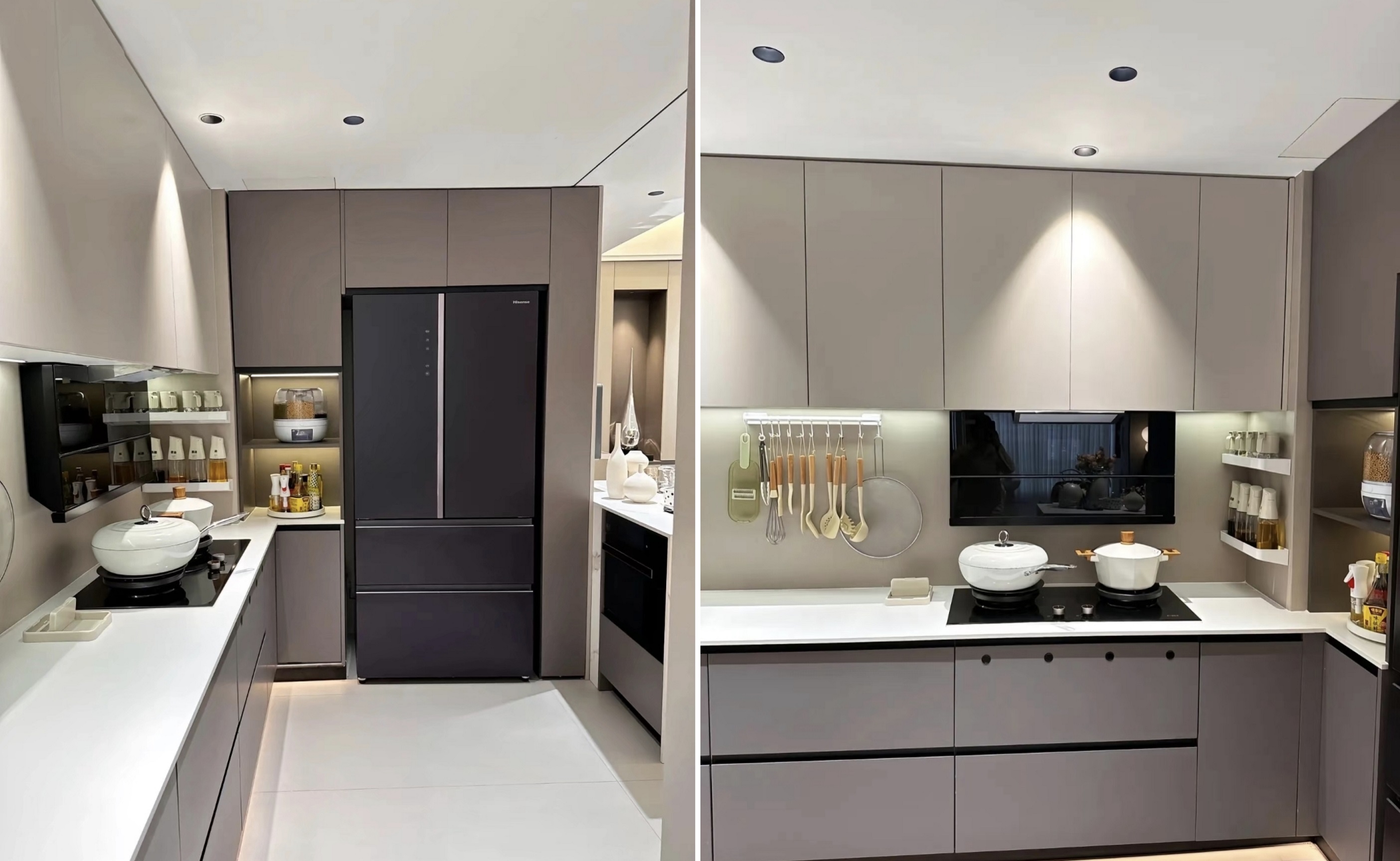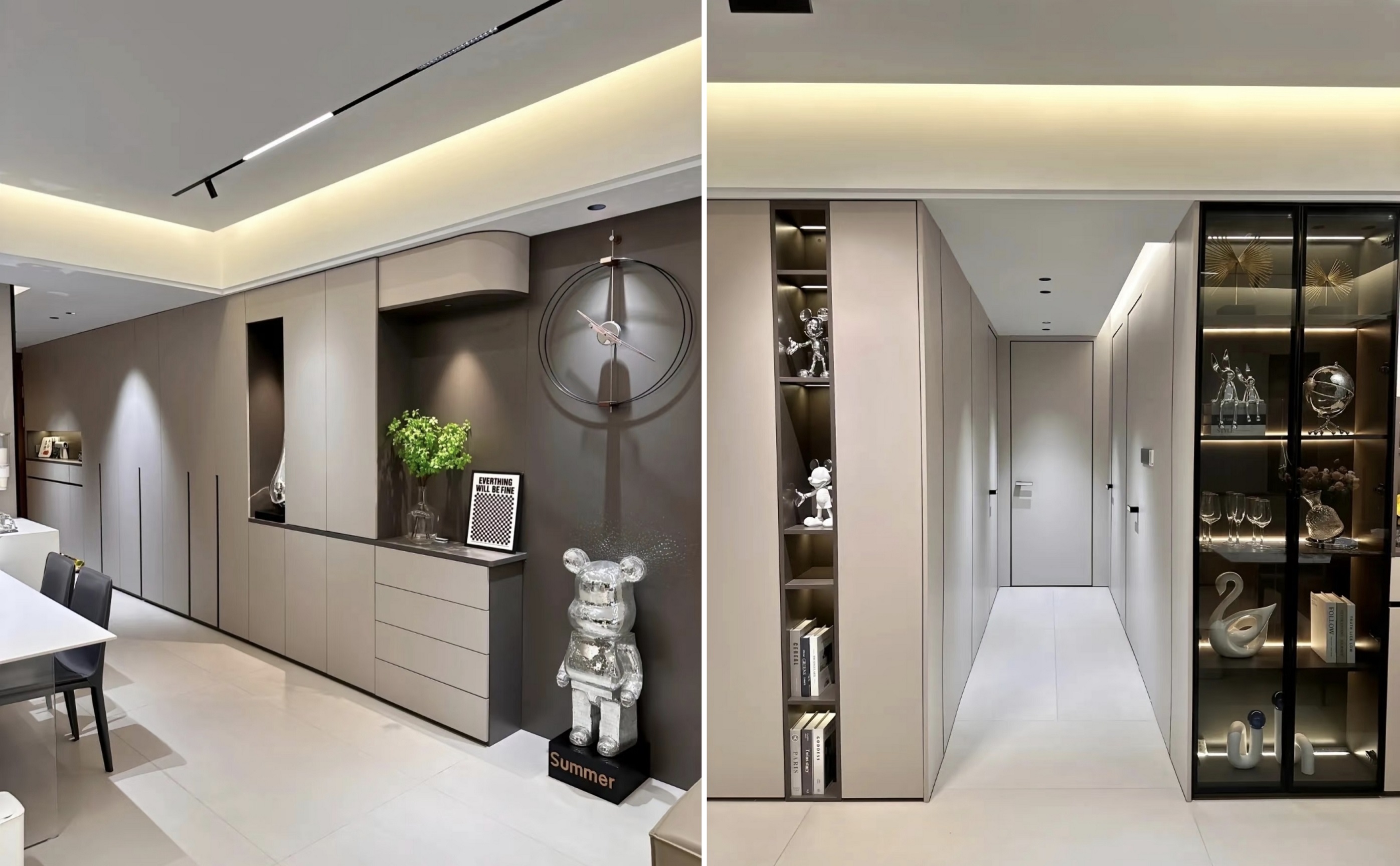 4. Εκτός από τα ντουλάπια, άλλοι τοίχοι χρησιμοποιούν πάνελ τοίχου με το ίδιο χρώμα με τις πόρτες του ντουλαπιού για ένα πιο συντονισμένο συνολικό αποτέλεσμα.