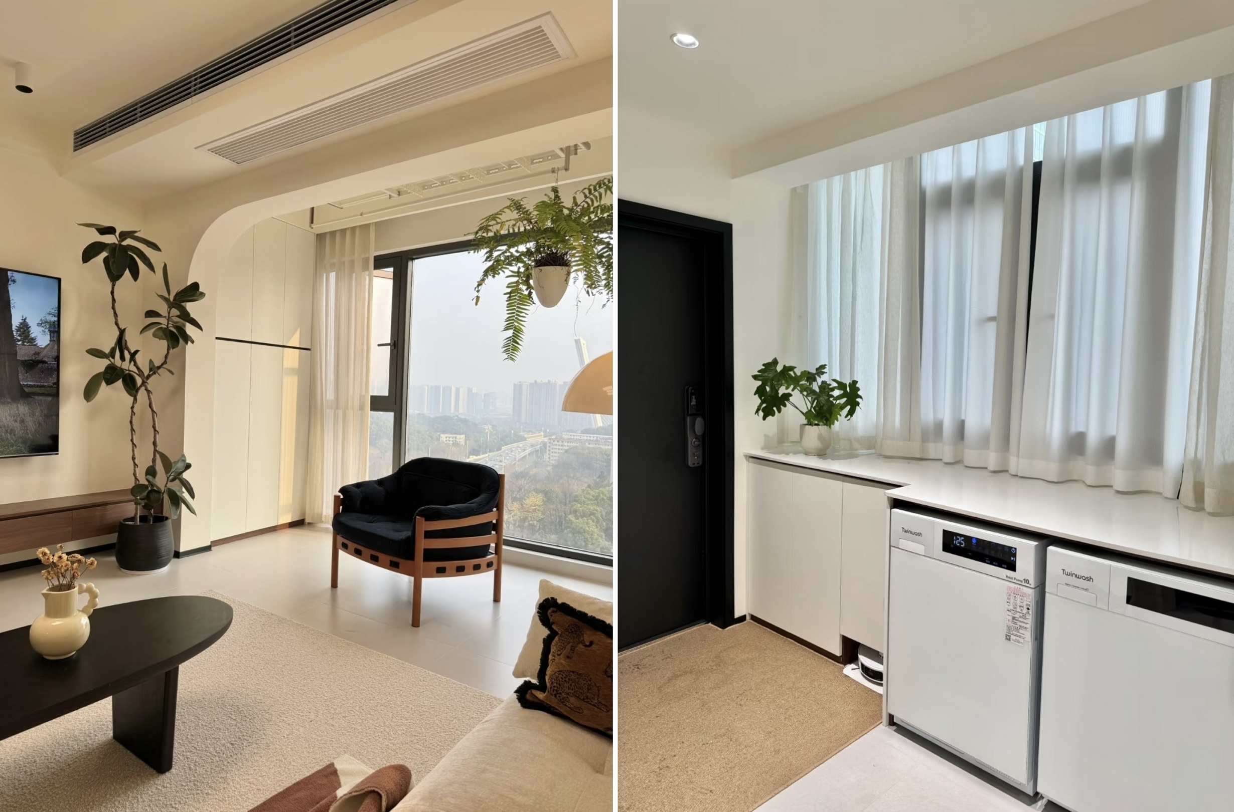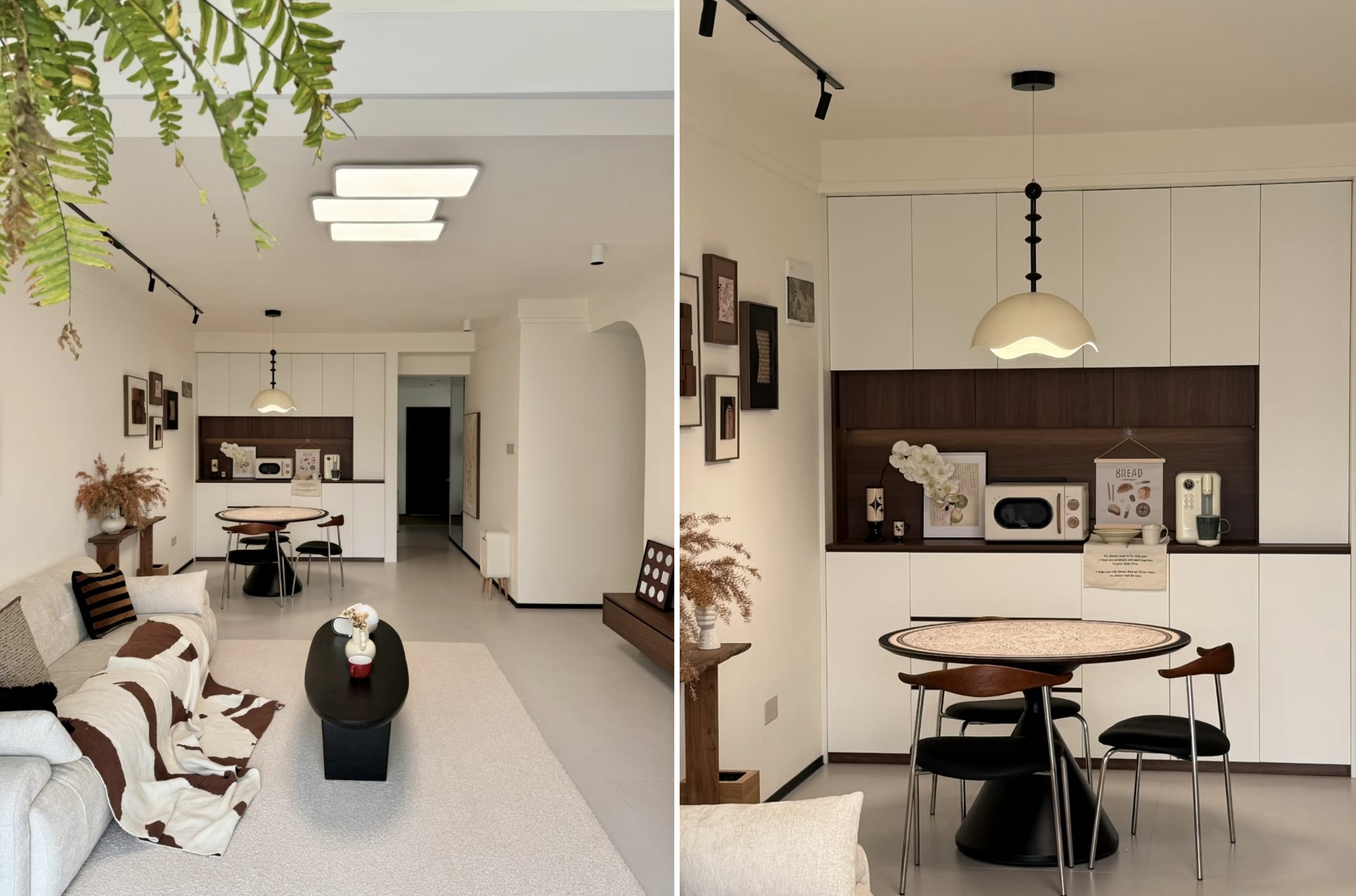 Μπορείτε να πιστέψετε ότι αυτό το σπίτι είναι μόνο 90 τετραγωνικά μέτρα, δεδομένης της κομψής μαύρης, λευκής και καφέ παλέτα χρωμάτων;